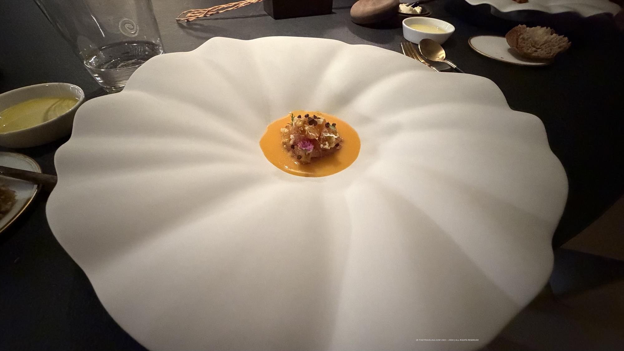 Sui Generis is located in a town called Saronno, approximately a half an hour drive from Como and Milan. It is a small restaurant styled with the finest furniture, lighting and a window to the kitchen where all the magic happened live in front of us.. It had only a dozen seats for a purposefully exclusive culinary experience.